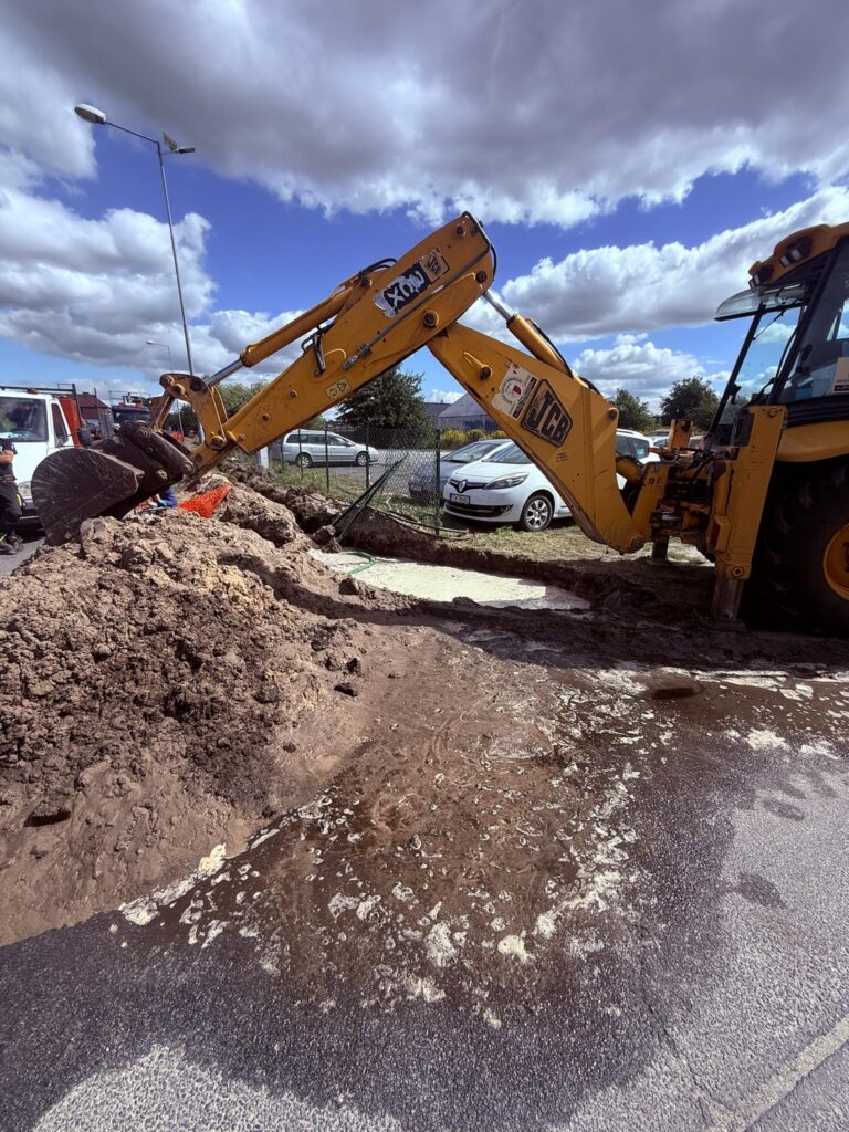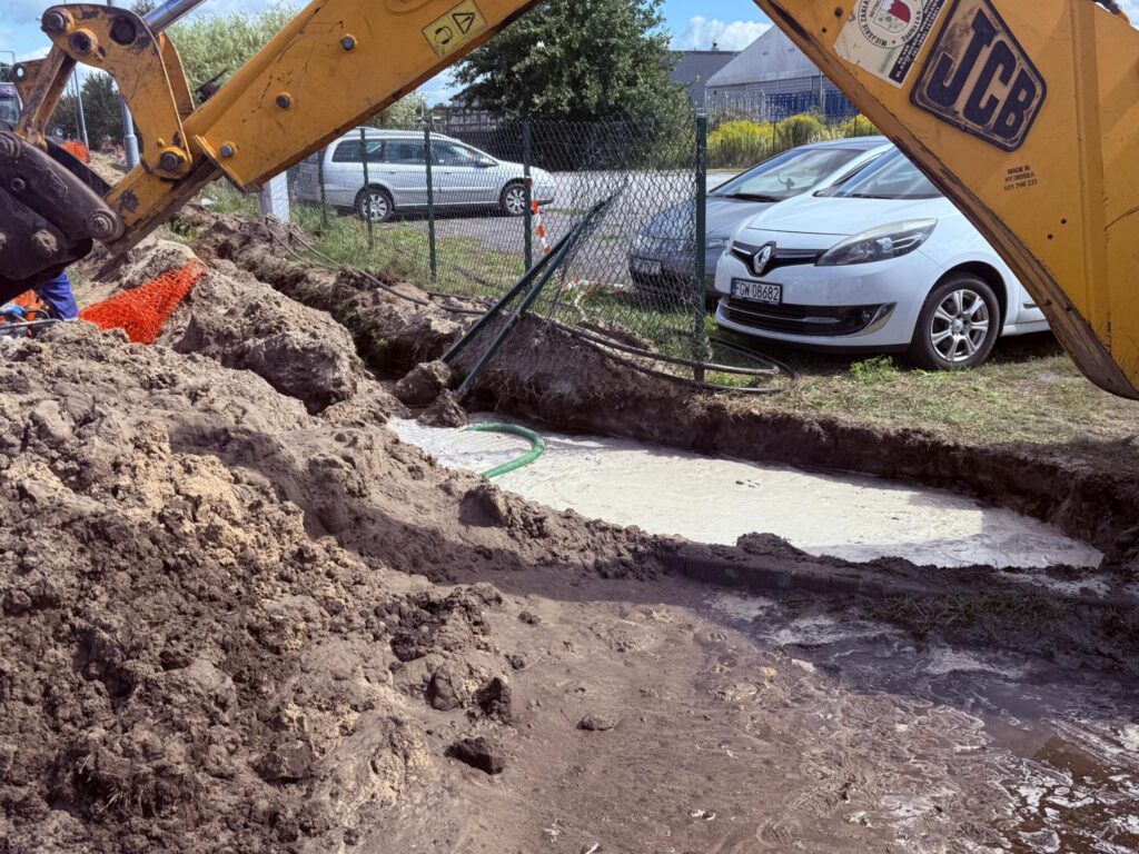 Firma zewn臋trzna podczas prac ziemnych uszkodzi艂a przewiertem g艂贸wn膮 magistral臋 wodoci膮gow膮. Na miejscu trwaj膮 prace naprawcze wykonywane przez „Miejskie Zak艂ady Komunalne” Sp. z o.o. w Witnicy.